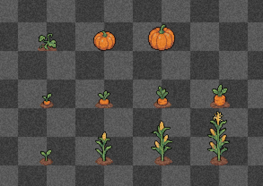 - 🎃 Pumpkin Patch: 3 stages of growth from sprout to a large, vibrant orange harvest-ready pumpkin.